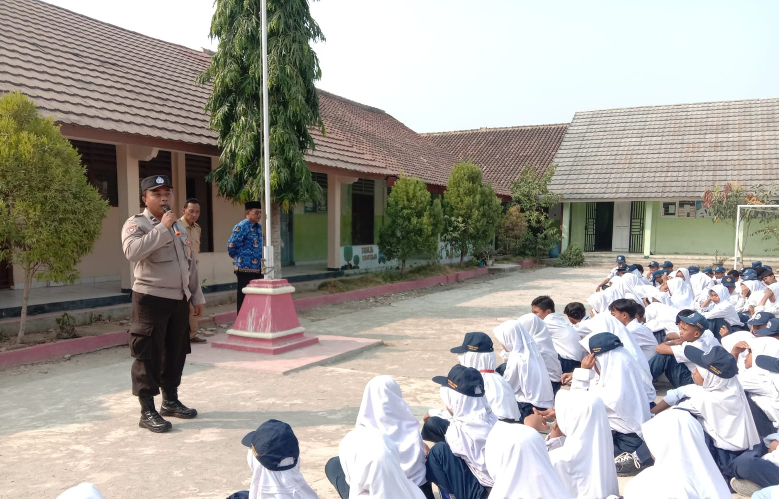 Dalam kegiatan tersebut, Kanit Binmas polsek Cibuaya memberikan himbauan dan arahan kepada warga dan siswa sekolah untuk tidak nongrong selepas sekolah dan melakukan tawuran.