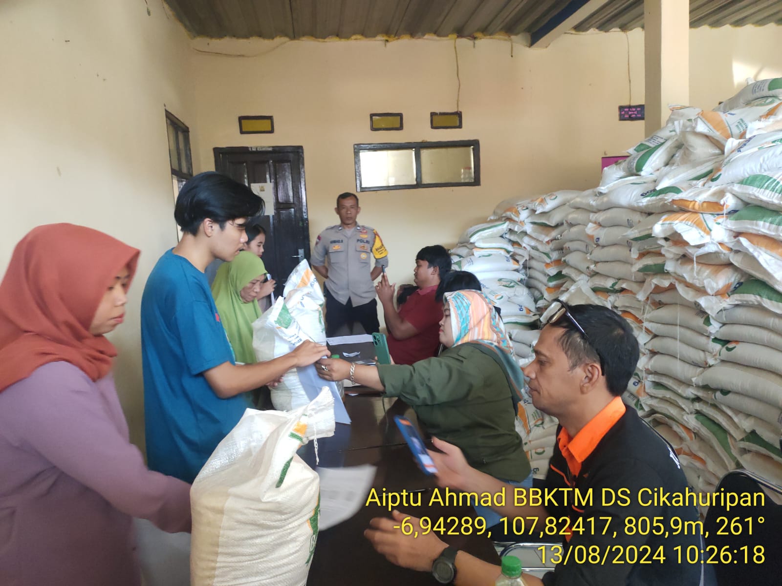 Bhabinkamtibmas Desa Cikahuripan Monitoring Penyaluran Bantuan Pangan Cadangan Beras Pemerintah (CBP) Tahap Bulan Agustus Tahun 2024