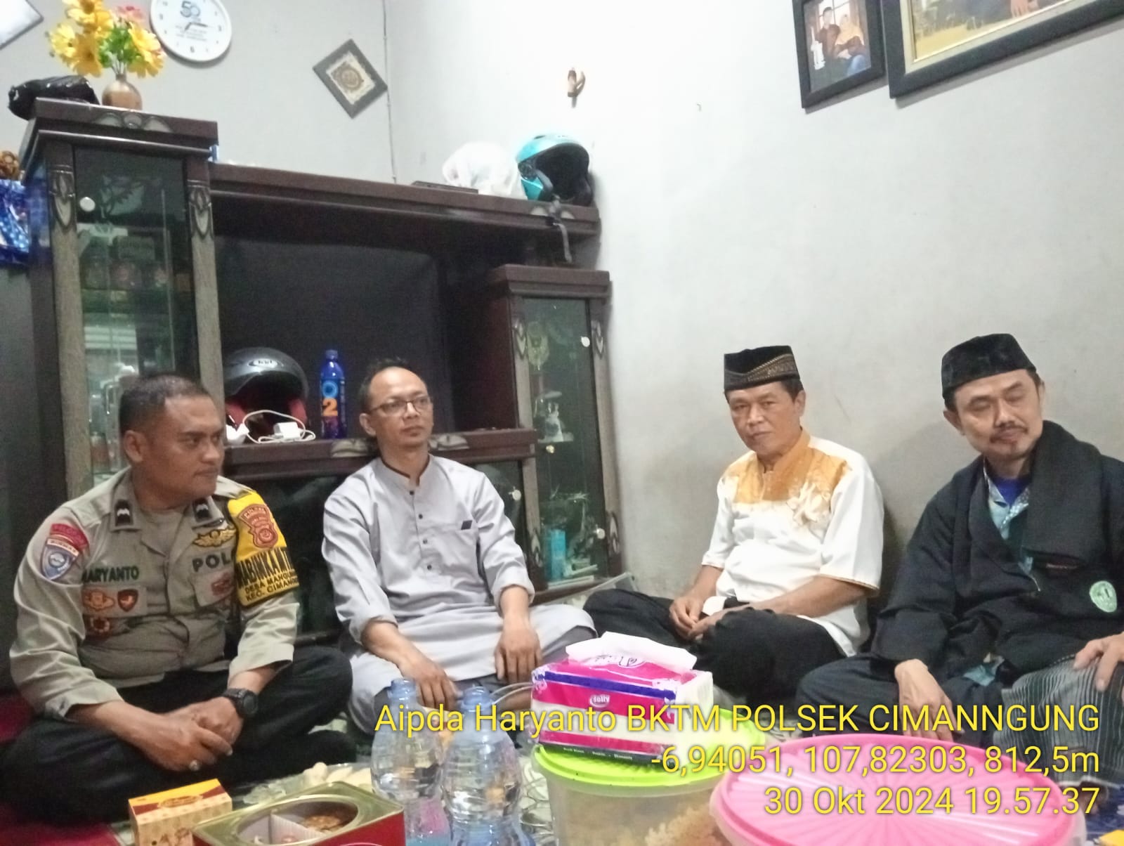 JP – Cimanggung_Sumedang. Bhabinkamtibmas Desa Mangunarga Polsek Cimanggung Polres Sumedang Polda Jabar AIPDA HARYANTO telah melaksanakan kegiatan sambang dan silaturahmi kamtibmas menghadiri acara syukuran acara Aqiqah tempat Bp Yatno di Perum Griya lakah waspada DS Cikahuripan Kecamatan Cimanggung Kabupaten Sumedang. Dalam rangka pelaksanaan BEYOND TRUST PRESISI tentang pencegahan money politic jelang pilkada 2024. Rabu (30/10/2024).