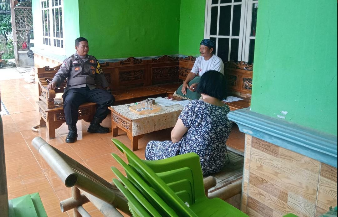 JP Polres Karawang – Bhabinkamtibmas Polsek Telukjambe Timur Aiptu Mamat Ruhimat melaksanakan kegiatan sambang door to door kepada masyarakat di lingkungannya.