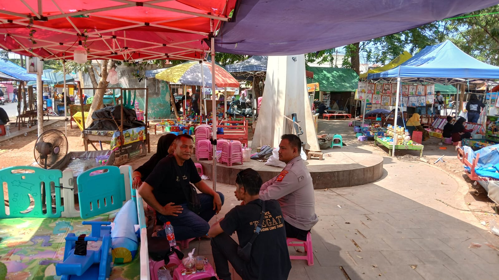 JP Polres Karawang – Bhabinkamtibmas Polsek Karawang Kota Bripka Adi Kriswanto sambangi masyarakat di Lapangan Karangpawitan, Kecamatan Karawang Barat, Karawang, Jawa Barat, Minggu (8/9/2024).