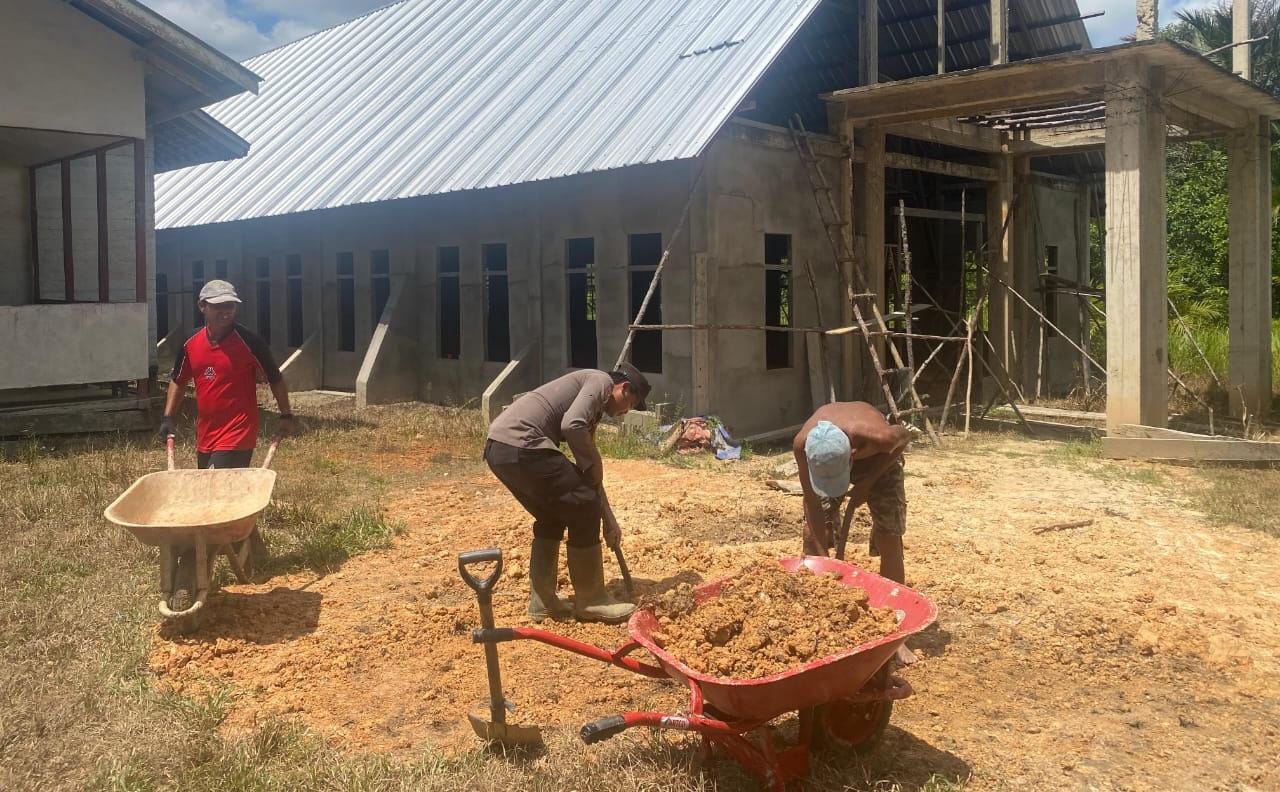 Bhabinkamtibmas Polsek Belitang Hulu Bersama Warga Kerja Bakti Bersihkan Gereja yang Sedang Dibangun