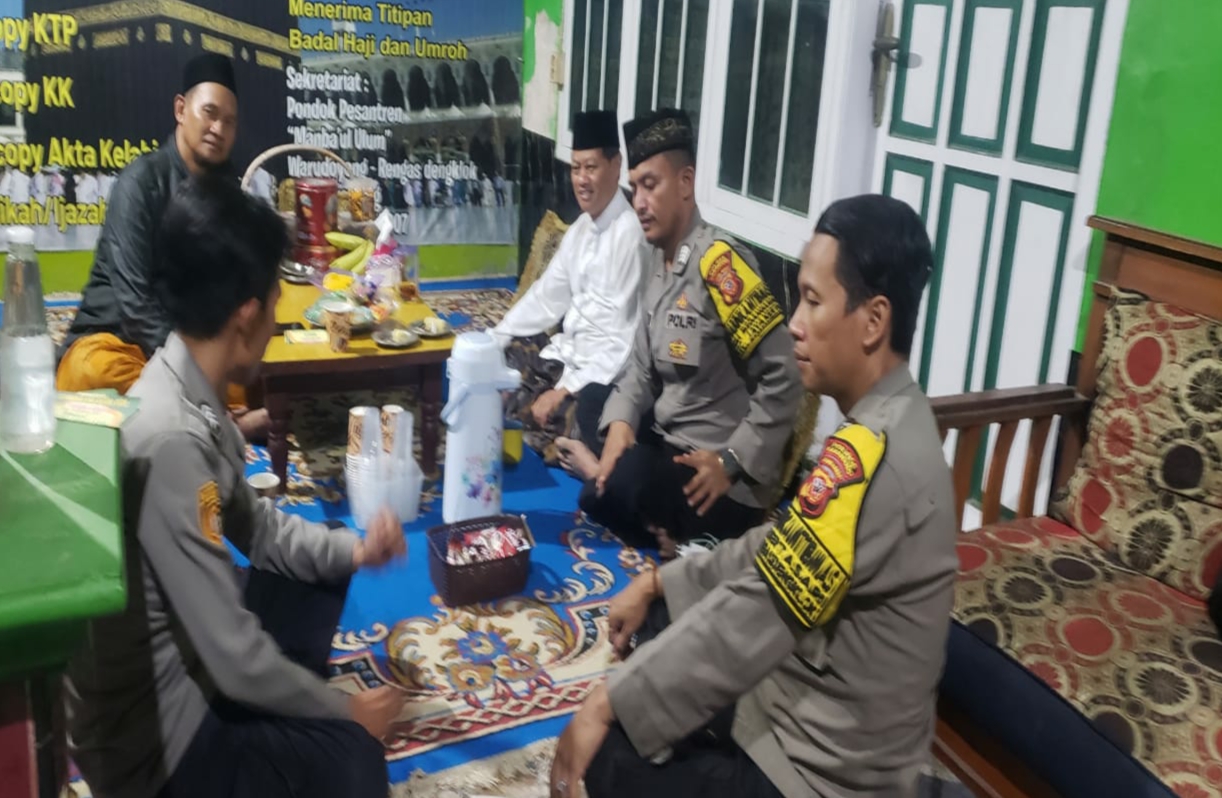 Kegiatan patroli sambang dialogis yang dilakukan anggota bhabinkamtibmas Polsek Rengasdengklok Bripka Endri Giri Felani, Beripka Fajar Lesmana dan Brigpol Firgiawan duduk bareng bersama warga bapak Ustad Asep di Pondok Pesantren Mambaul Ulum didusun Warudoyong Desa Rengasdengklok Selatan Kec.Rengasdengklok