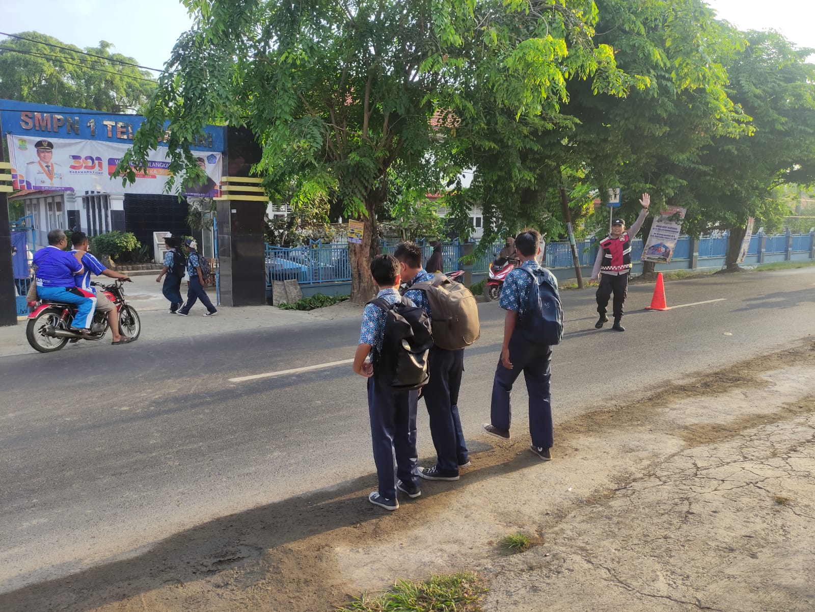 JP KARAWANG – Aipda Yosep, Bhabinkamtibmas Polsek Telagasari Polres Karawang Polda Jabar, melakukan giat pengaturan lalulintas di SMPN 1 Telagasari (16/10/2024).