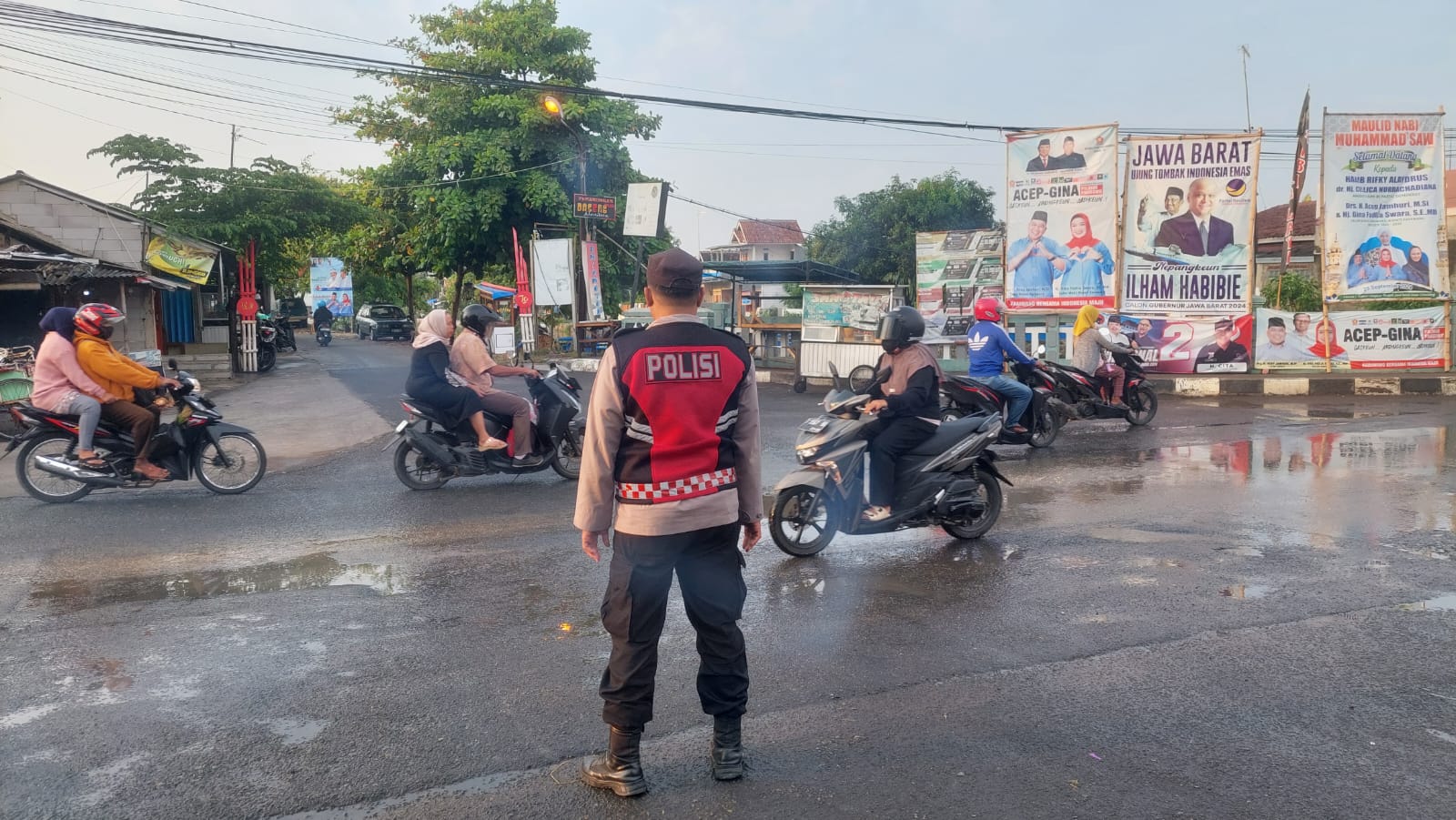 Bhabinkamtibmas Polsek Telagasari Lakukan Gatur disekitar Pasar Antisipasi Kemacetan di Pagi Hari