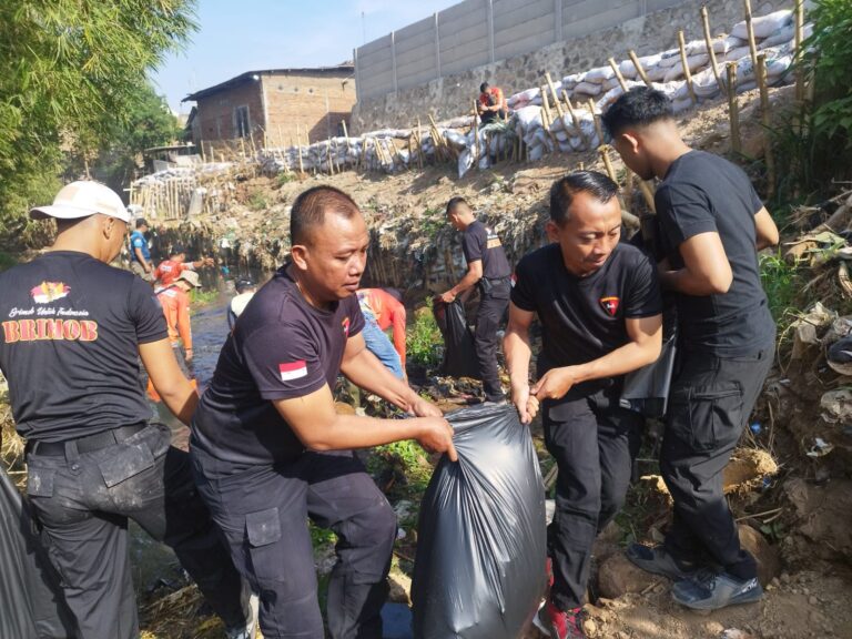 JP. Sumedang – Personil Detasemen Gegana Satbrimob Polda Jawa Barat bersama dengan masyarakat Cikeruh menggelar kerja bakti membersihkan sungai kumuh di wilayah Desa Cikeruh dan Desa Mekargalih dalam Rangka HUT ke 79 Korps Brimob Polri.Kerja bakti ini untuk menciptakan lingkungan yang bersih dan nyaman, serta mencegah banjir.