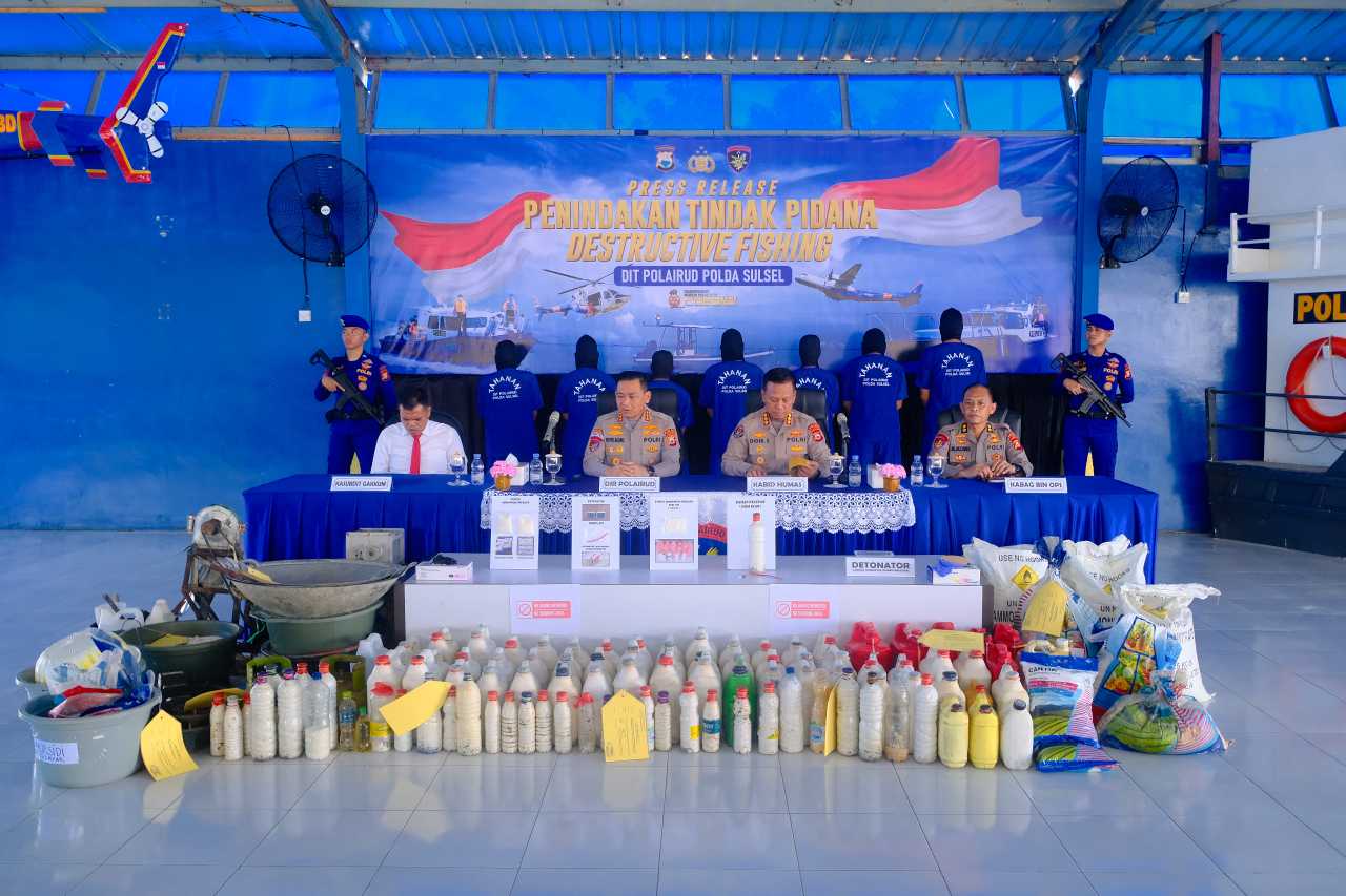 Makassar, JURNALPOLRI.MY.ID – Laut Sulawesi Selatan kembali diselamatkan dari ancaman kehancuran setelah Direktorat Polisi Perairan dan Udara (Ditpolairud) Polda Sulsel berhasil membongkar praktik destructive fishing yang marak terjadi di sejumlah wilayah pesisir.