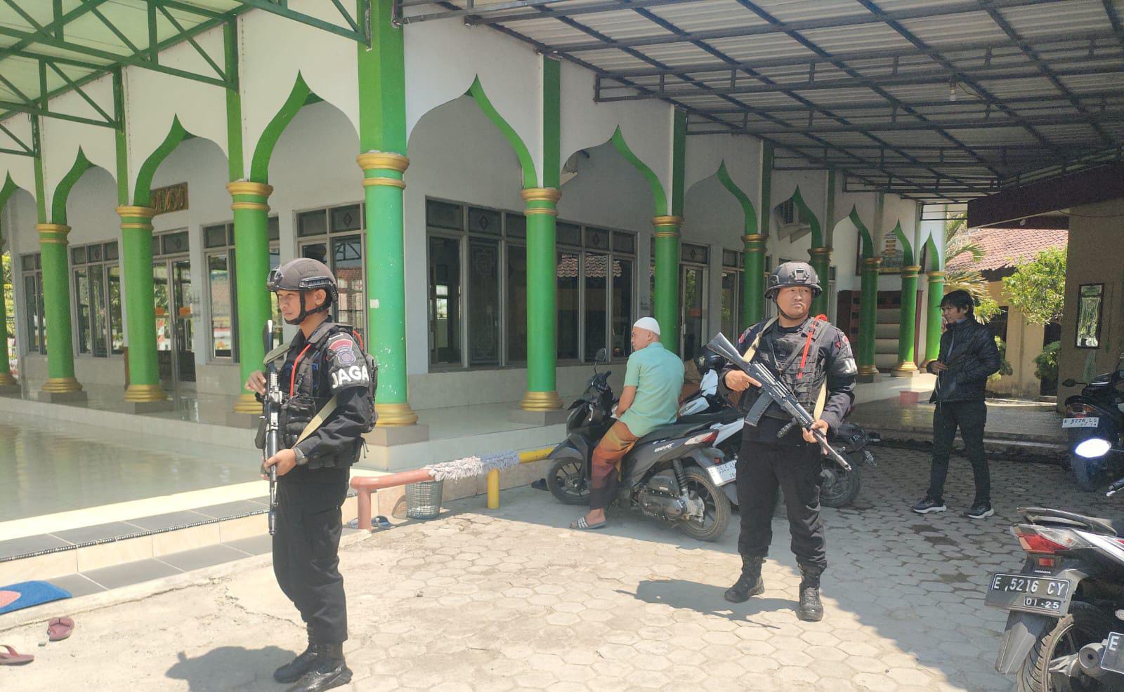 JP.Anggota Kompi 4 Batalyon C Pelopor Satbrimob Polda Jabar melaksanakan pengamanan Shalat Jum’at di Mesjid Al-Yusro Desa Winong Kecamatan Gempol kabupaten Cirebon.
