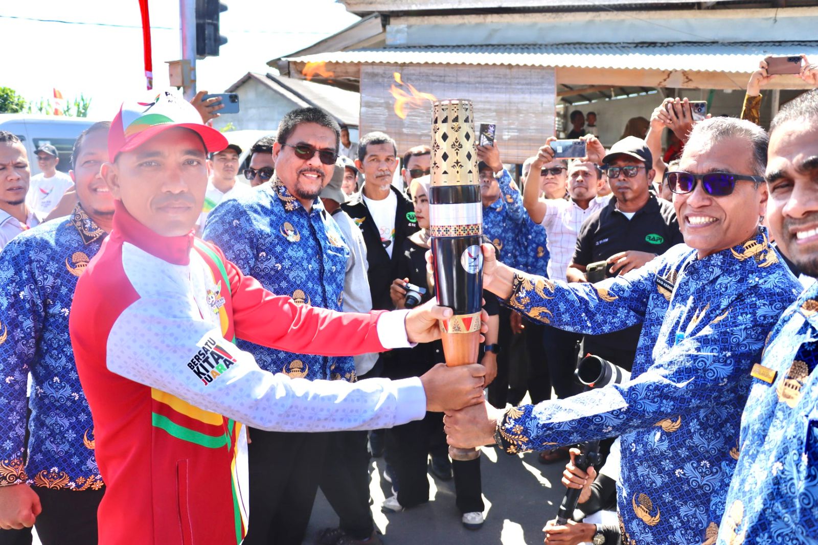 Seremonial estafet api PON dimulai dari Kabupaten Bireuen dan diterima oleh Bripka Muhammad Rizal, personel Satlantas Polres Pidie Jaya, yang juga merupakan mantan atlet lari era 2010.