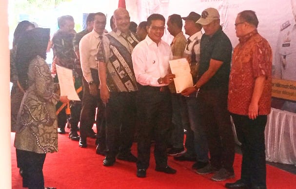 “Oleh sebab jumlah masyarakat Kabupaten Bandung yang memiliki 1.006.000 bidang tanah, sekarang tinggal menyisakan 150.000 an yang belum tersertifikasi,” ungkap Bupati Dadang Supriatna, usai serah terima sertifikat untuk masyarakat Cibodas Solokanjeruk.