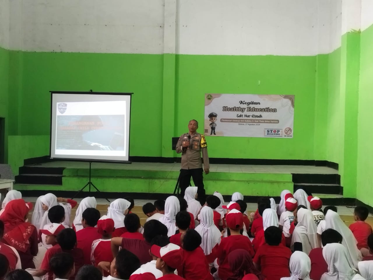 JURNALPOLRI.COM, Soreang – Bhabinkamtibmas Cingcin Polsek Soreang Aiptu Eka Herdianto memberikan penyuluhan dan edukasi terkait pencegahan bullying kepada para siswa siswi SD IT Nur-Riyadh Cingcin, Rabu (26/06/2024) pagi.
