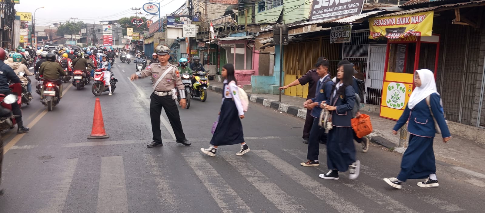 “Kegiatan ini dilakukan setiap pagi hari terutama di depan sekolah-sekolah yang bersebrangan langsung dengan jalan raya, tujuannya tidak lain untuk membantu anak sekolah menyeberang jalan menuju ke sekolah,” terang Kapolsek.