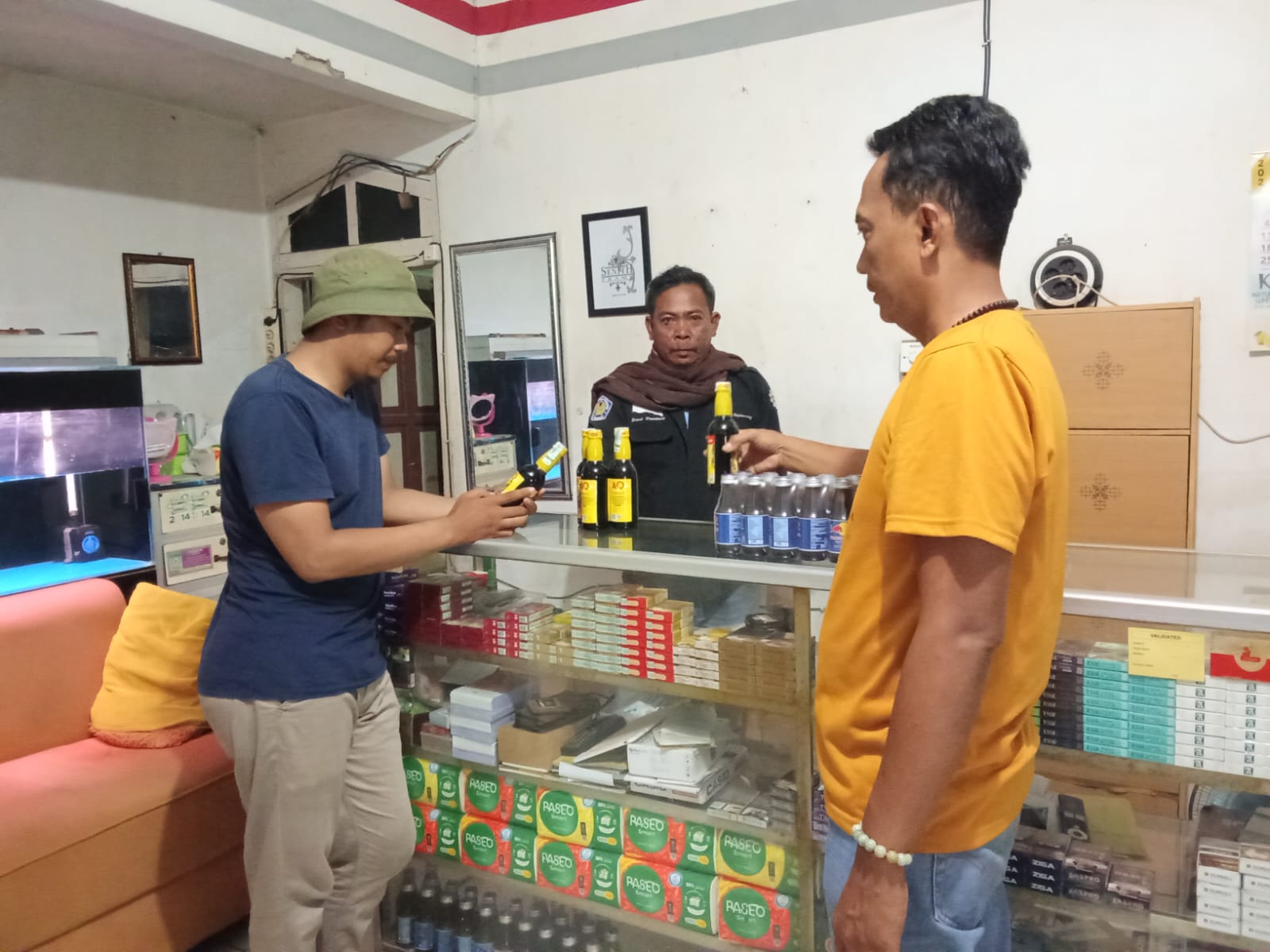 Toko Sdr E dusun Ketimpal desa Cilamaya wetan Kec. Cilamaya Wetan Kab. Karawang dengan Hasil giat 2 botol Arak cap OT.