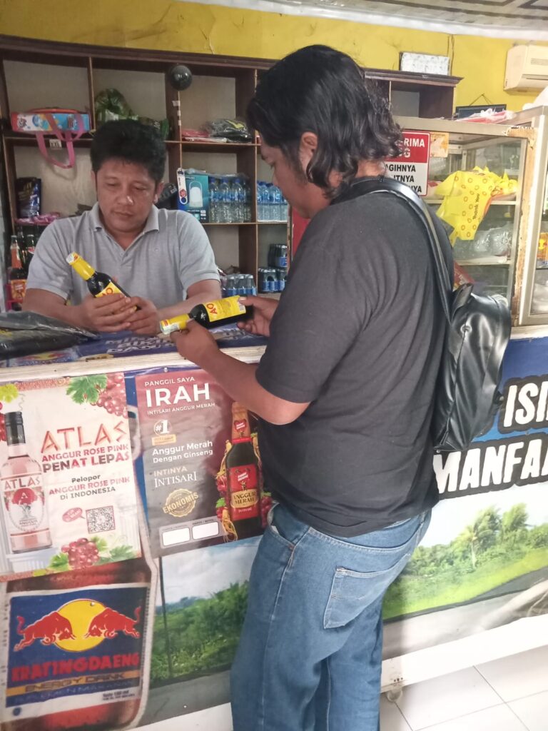 Toko Sdr E dusun Ketimpal desa Cilamaya wetan Kec. Cilamaya Wetan Kab. Karawang dengan Hasil giat 2 botol Arak cap OT.