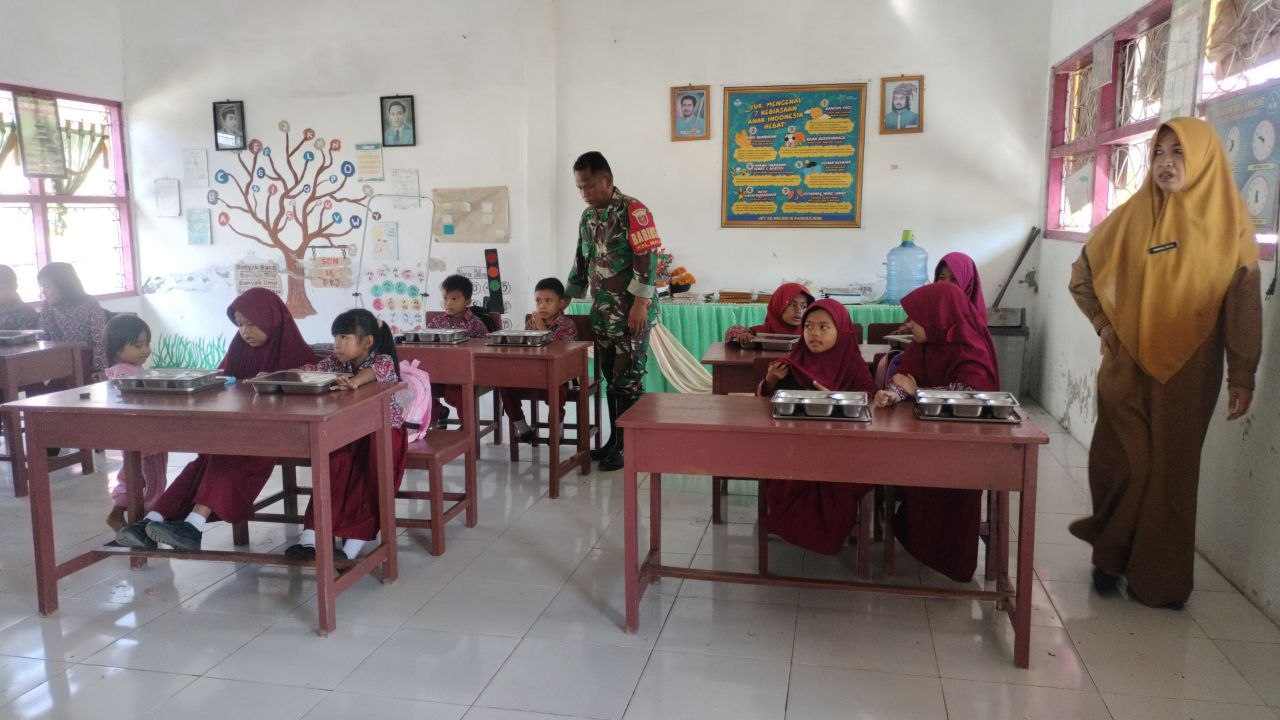Salah satu personel Babinsa menyampaikan komitmennya untuk terus mendukung kelancaran program strategis ini. Diharapkan, dengan adanya makanan bergizi ini dapat menekan angka stunting serta menciptakan generasi muda yang sehat, kuat, dan cerdas.
