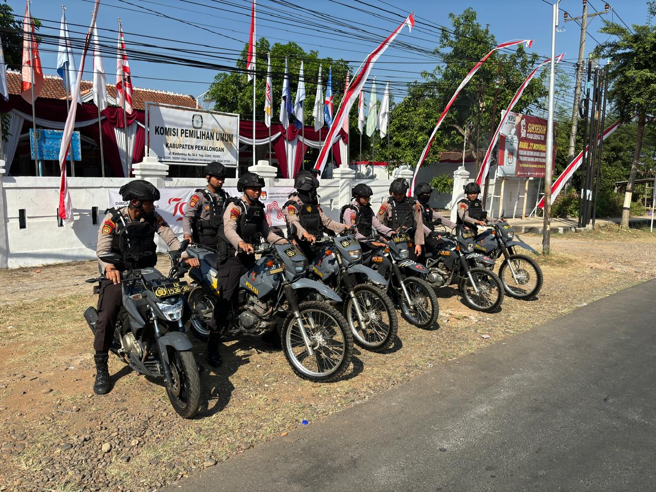 Dengan mengendarai sepeda motor dan bersenjata lengkap, tim patrol menyambang kantor KPU dan juga Bawaslu Kabupaten Pekalongan, Jumat (30/08).