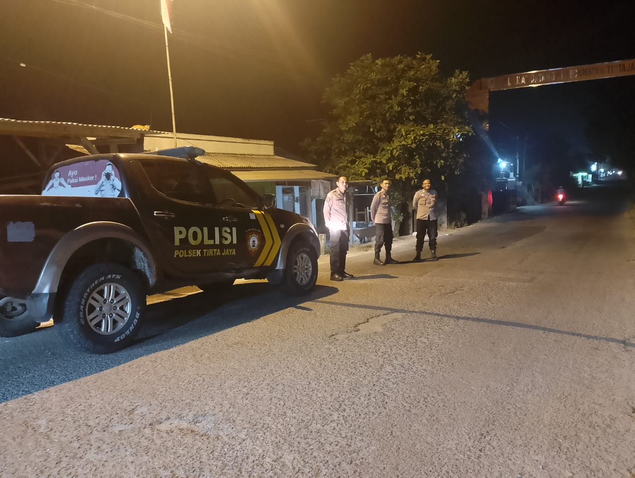 Kapolres Karawang AKBP Edwar Zulkarnain, S.I.K., S.H., M.H. melalui Kapolsek Tirtajaya Akp Hasanudin,S.Pd menerangkan, saat ini Polri khususnya Polsek Tirtajaya terus berupaya dalam mewujudkan kondusifitas guna mencegah GU kamtibmas di wilayah Hukum Polsek Tirtajaya terlebih pada Malam Hari. Terangnya