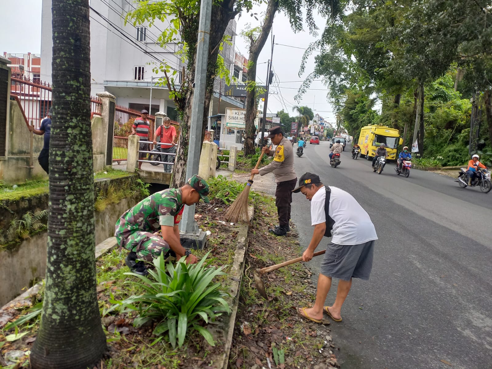 Kegiatan gotong royong yang dipimpin langsung oleh Bhabinkamtimas dan Bhabinsa di seputaran Jl.Asahaan, parit serta sepanjang jalan Asahan