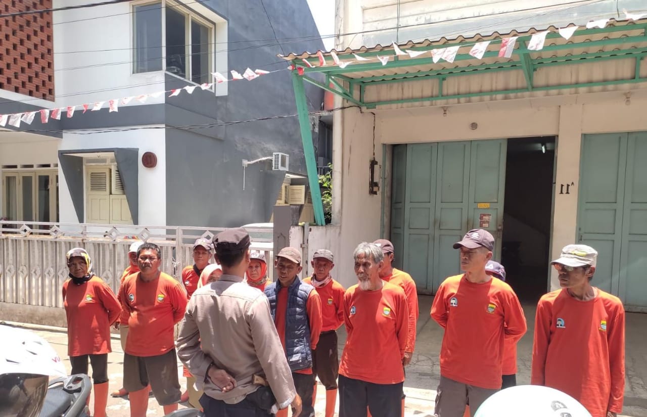 JP, Polrestabes Bandung – Polda Jabar Polsek Regol. Bhabinkamtibmas Kelurahan Pungkur Polsek Regol Aipda Tri Iksan memberikan Pembinaan dan Arahan serta Himbauan Kamtibmas kepada petugas Gober kelurahan Pungkur di halaman kelurahan Pungkur kecamatan Regol Kota Bandung.