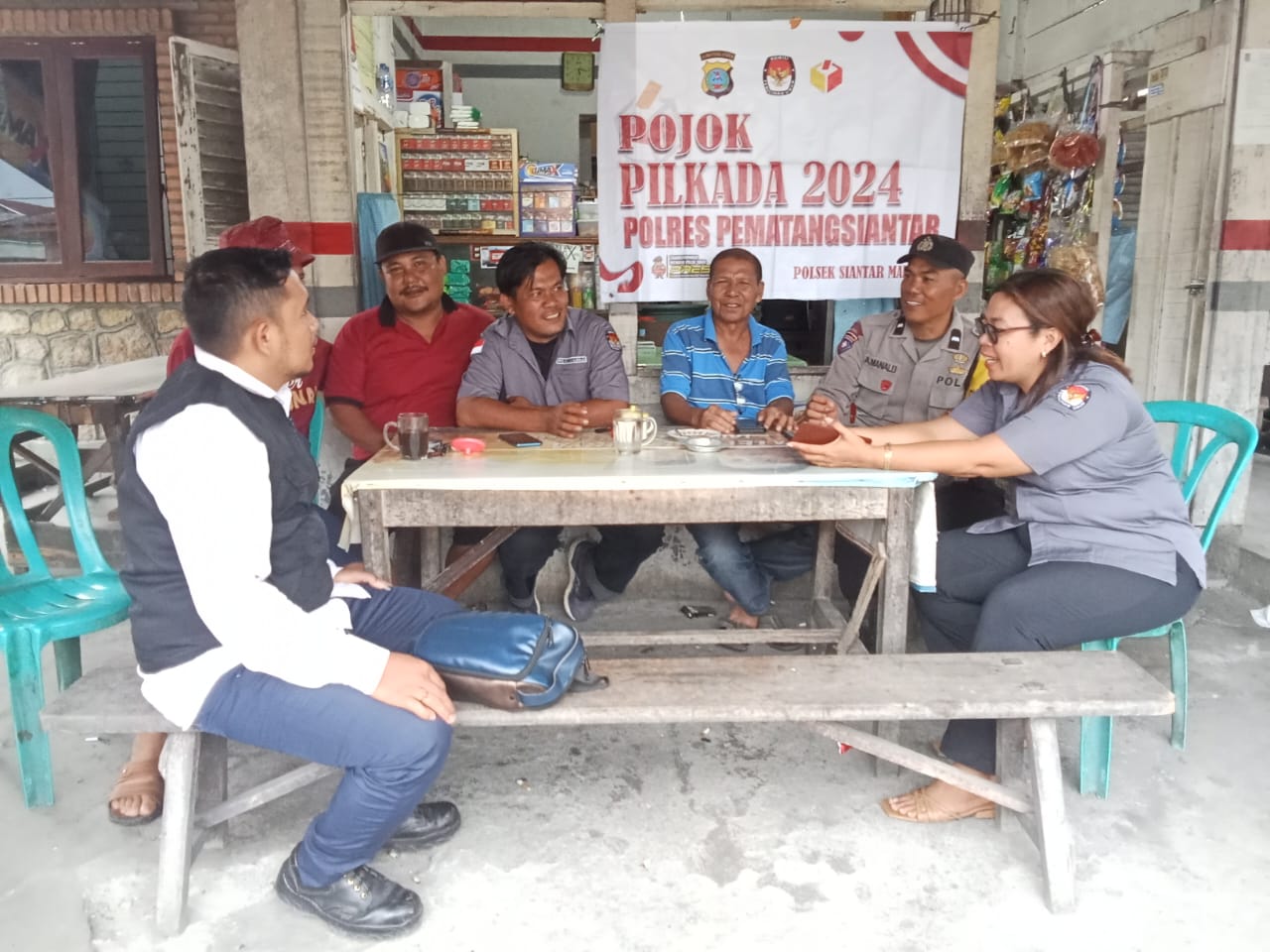 JP. PEMATANG SIANTAR-SUMATERA UTARA. Polres Pematangsiantar melalui Bhabinkamtibmas Polseķ Sianțar Marihat AIPDA Adilman Manalu melaksanakan Pojok Pemilihan kepala daerah (Pilkada) tahun 2024 di Warung Kopi Pak Riccan Siringo-ringo jln Durian Kelurahan SukaMaju Kecamatan Siantar Marihat Kota Pematangsiantar pada hari Selasa 29 Oktober 2024 pagi sekira pukul 09.30 Wib.