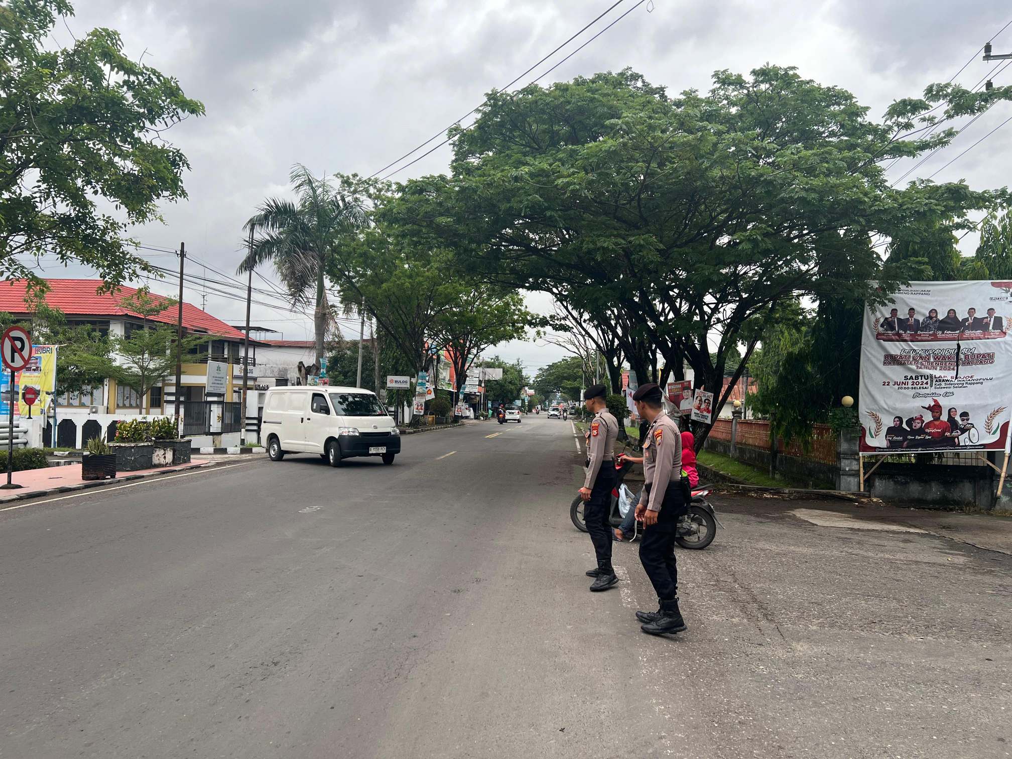 Personel Polres Sidrap pun tetap berdiri tegak di tengah lalu-lalang kendaraan, menghadirkan rasa nyaman dan aman bagi para pengguna jalan.