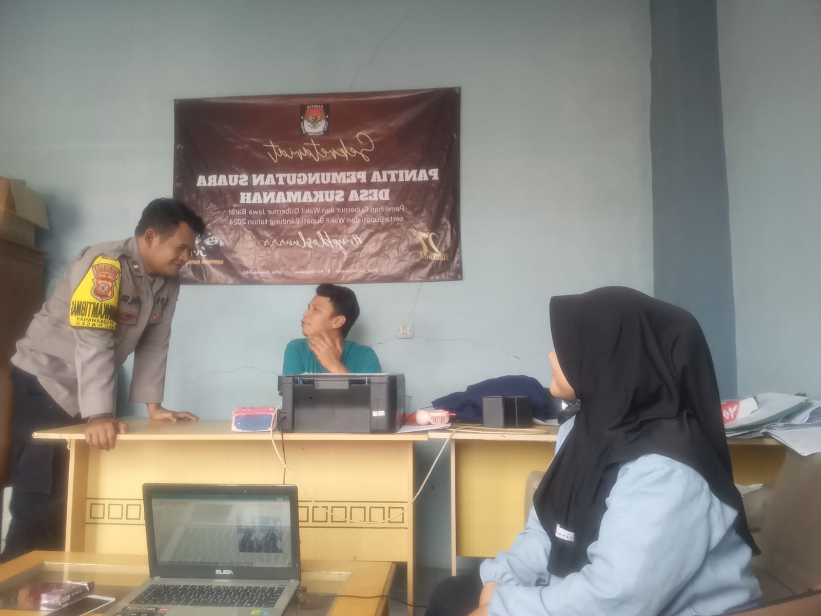 Bhabinkamtibmas Desa Sukamanah menyampaikan pesan kepada anggota PPS Desa Sukamanah agar terus mensosialisasikan informasi terkait Pilkada serentak tahun 2024 kepada warga masyarakat dan mempersiapkan TPS dengan baik agar pelaksanaan pemilu dapat berjalan lancar, Menjaga situasi kamtibmas di wilayah Paseh agar tetap aman dan kondusif. Katanya