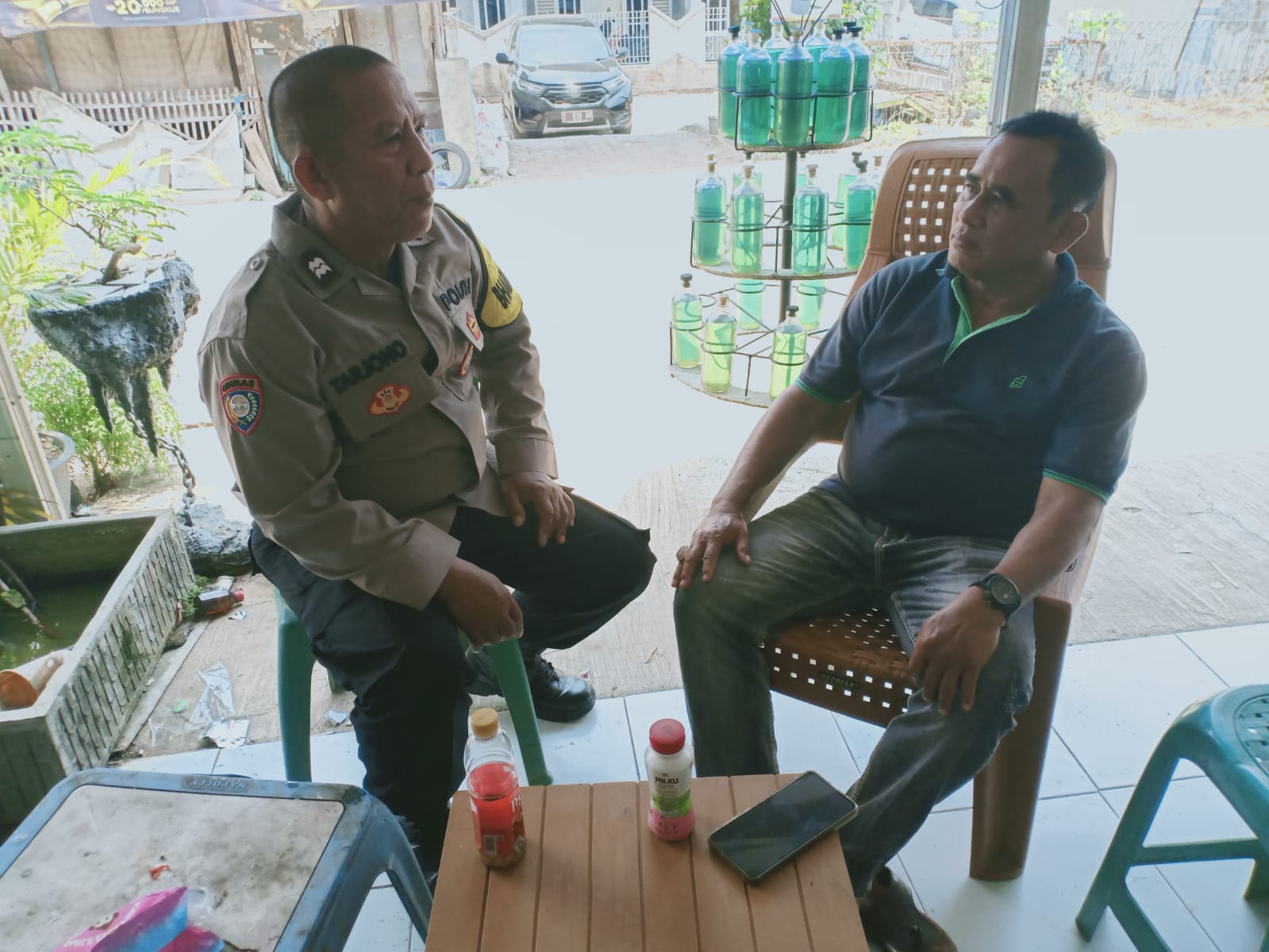 Aiptu Tarjono Bhabin Polsek Cikampek Giat Rutin Patroli dialogis, Personil Połsek Cikampek sambangi ketus RW warga Dusun Pelem Desa Tirtasari Kecamatan Tirtamulya Kabupaten Karawang, giat dalam rangka Cooling System sekaligus berikan arahan dan pesan kamtibmas serta memastikan wilkum tetap aman .