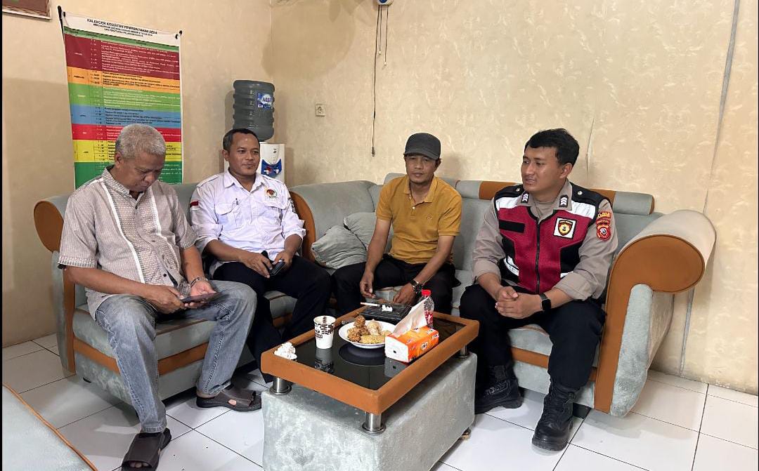 JP – Polres Karawang – Cooling System, Bhabinkamtibmas Polsek Telukjambe Barat Bripka Dede Wahab dan Brigpol Indra Dwi Prasetyo sambangi Staf Desa Wanakerta, Kecamatan Telukjambe Barat, Karawang, Jawa Barat, Kamis (10/10/2024).