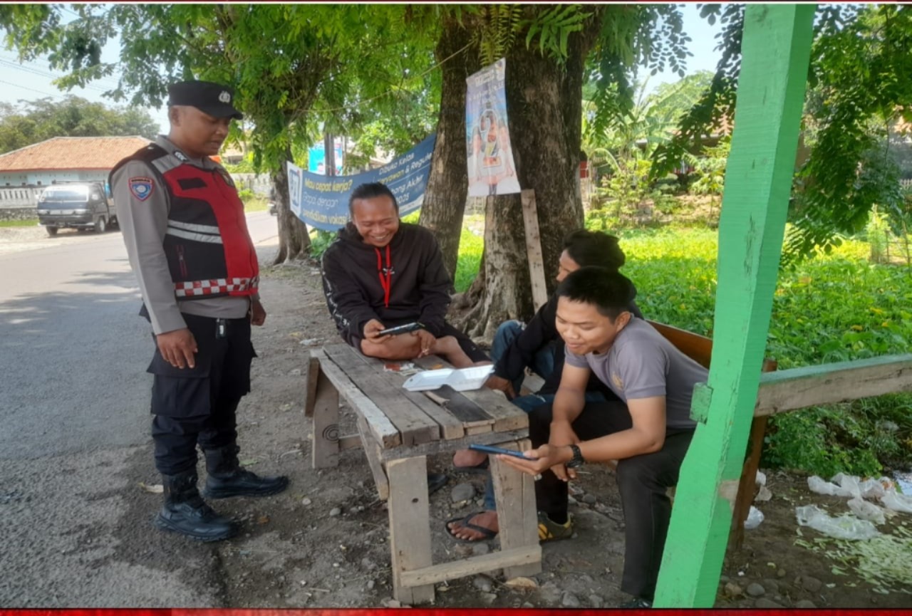 JP – Polres Karawang – Cooling System! Bhabinkamtibmas Polsek Pangkalan Brigadir Kardi melaksanakan sosialisasi layanan call center 110 bebas pulsa kepada masyarakat.