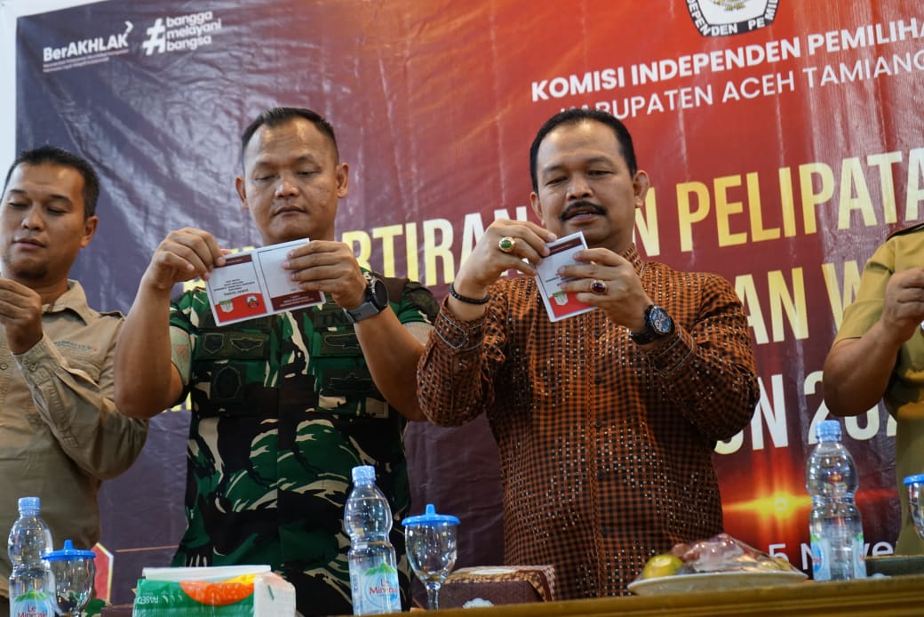 Turut hadir dalam kegiatan seremonial unsur Forkopimda, Kepala Badan Kesbangpol, Sekretaris KIP Aceh Tamiang beserta jajaran serta tugas pengamanan dari Polres Aceh Tamiang.