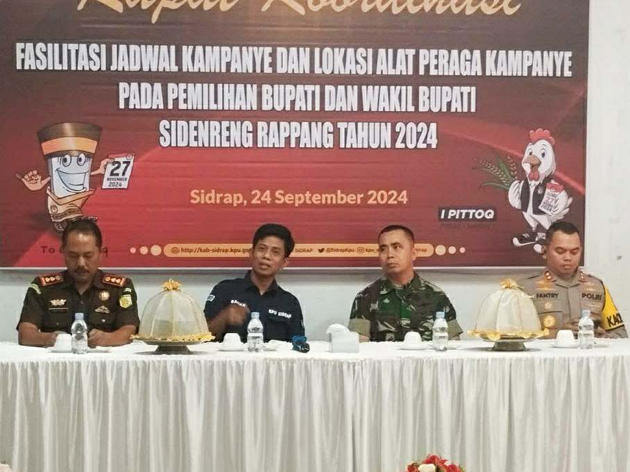 JURNALPOLRI.MY.ID, Sidrap – Dalam balutan suasana hangat pada Selasa, 24 September 2024, Letkol Inf Awaloeddin, S.I.P. (Dandim 1420/Sidrap) menghadiri rapat koordinasi penting terkait jadwal dan lokasi kampanye serta penempatan alat peraga dalam Pemilihan Bupati dan Wakil Bupati Sidrap 2024. Bertempat di Cafe Resto Prasmanan HADIDE, Jl. Jend. Sudirman, Sidrap, acara ini menjadi ajang konsolidasi strategis.