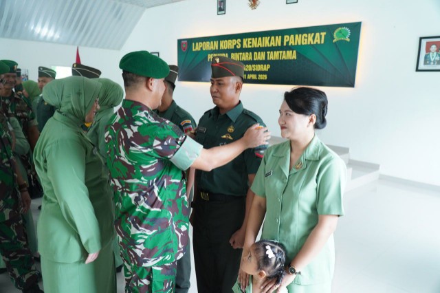 “Kenaikan pangkat merupakan wujud pengakuan dan penghargaan atas dedikasi kinerja prajurit. Pangkat yang lebih tinggi diikuti tanggung jawab yang lebih besar,” tegasnya.
