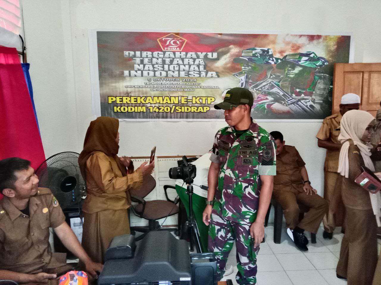 JURNALPOLRI.MY.ID, Sidrap – Koramil 1420-05/Dua Pitue menggelar aksi nyata dengan melaksanakan perekaman E-KTP dan aktivasi KTP digital sebagai bagian dari peringatan HUT ke-79 TNI.