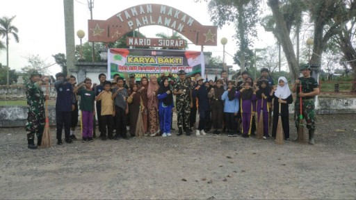 Danramil 06/Panca Rijang memimpin karya bakti bersihkan TMP Mario sambut HUT RI ke-80.