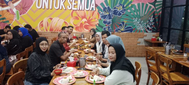 Meja panjang telah tertata rapi, lengkap dengan menu khas Nusantara: ikan kakap goreng, ayam goreng, kangkung tumis, dan sambal bakar — sajian yang menggugah selera dan menghadirkan suasana kampung halaman di tengah ibu kota.