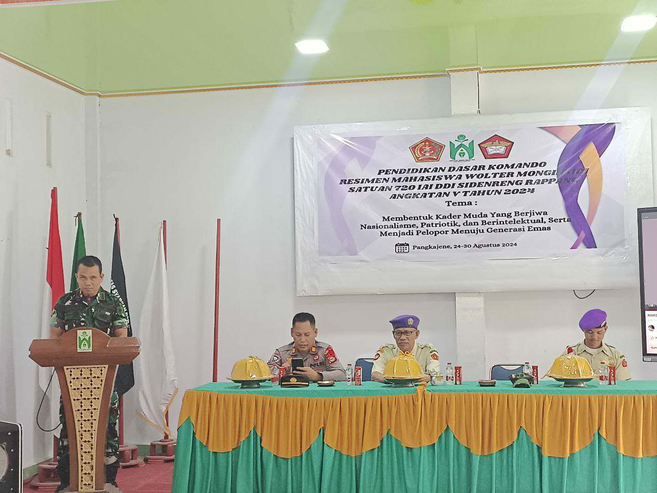 JURNALPOLRI.MY.ID, Sidrap – Aula HKI DDI Sidrap di Jalan Rusa No. 16, Kelurahan Lautang Benteng, Kecamatan Maritengngae, Kabupaten Sidrap, menjadi saksi bisu semangat muda yang berkobar pada Sabtu, 24 Agustus 2024. Pagi itu, Kegiatan Pendidikan Dasar (Diksar) Angkatan Ke-V Komando Resimen Mahasiswa 720 IAI DDI Sidenreng Rappang resmi dibuka, mengusung tema yang penuh makna: “Membentuk Kader Muda Yang Berjiwa Nasionalisme, Patriotik, dan Berintelektual Serta Menjadi Pelopor Menuju Generasi Emas.”
