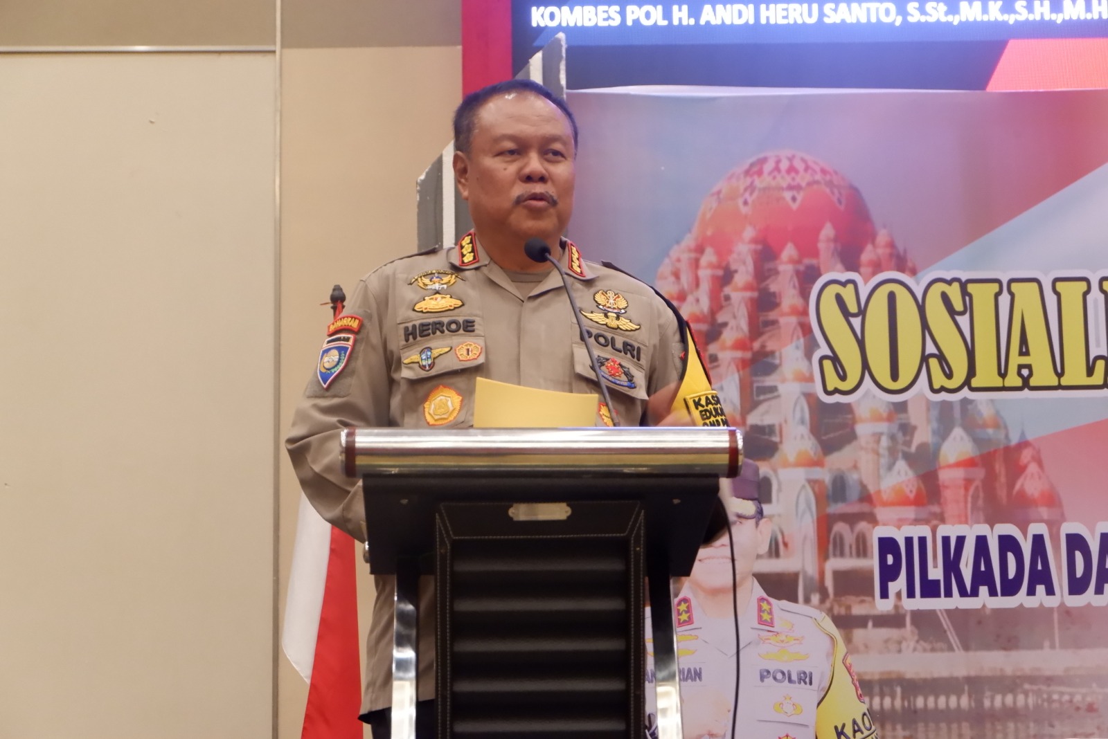MAKASSAR, — Dirbinmas Polda Sulsel Kombes Pol H. A. Heru Santo, S.St, Mk, SH, MH membuka kegiatan sosialisasi dan edukasi yang digelar di Hotel Dalton, Rabu (11/09/2024).
