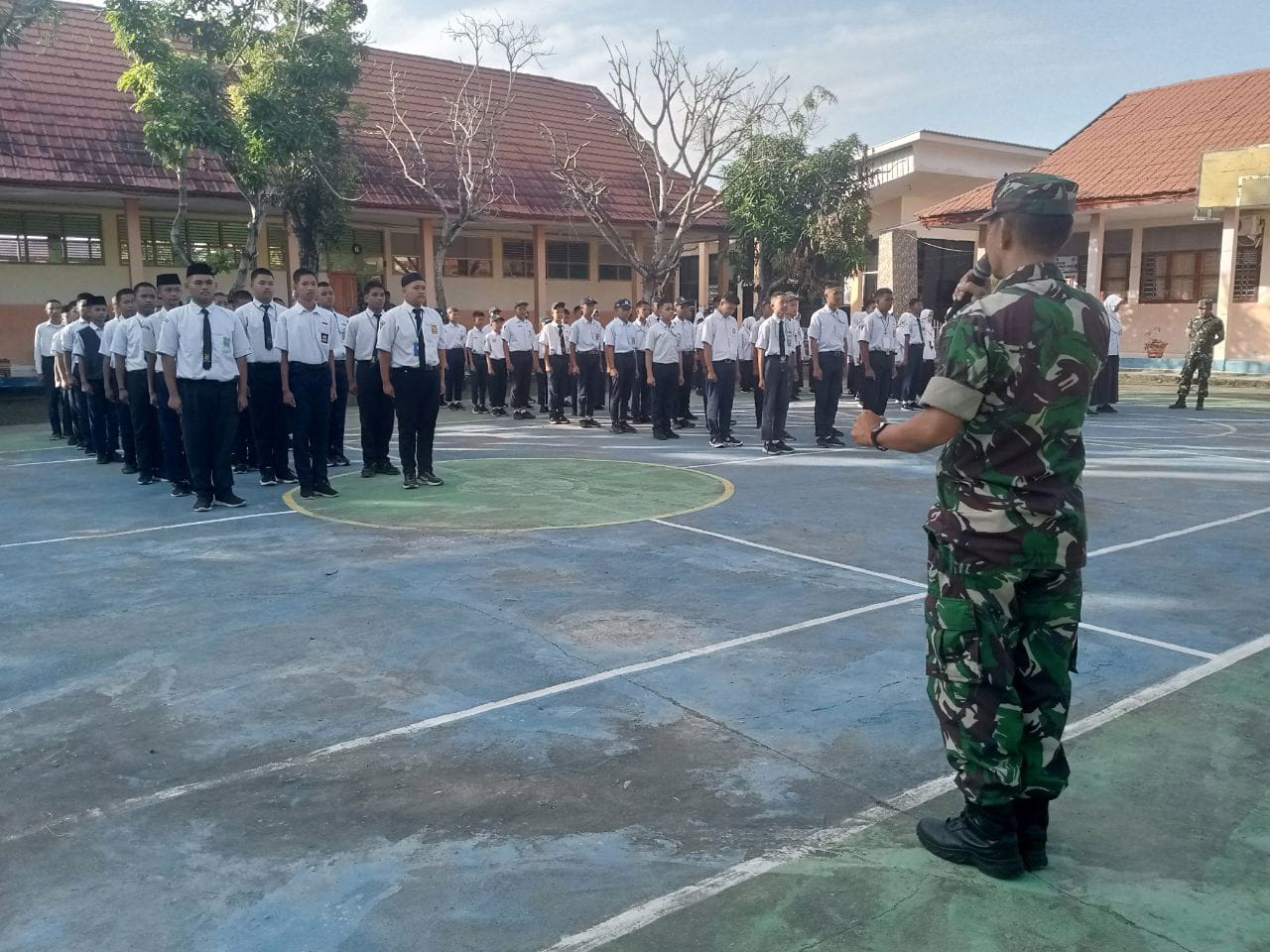 JURNALPOLRI.MY.ID, Sidrap – Dalam rangka Masa Pengenalan Lingkungan Sekolah (MPLS) di UPT SMKN 5 Sidrap, Kecamatan Maritengngae, Kabupaten Sidenreng Rappang, Bati Tuud Koramil 1420-03/Maritengngae Serma Muh. Yunus bersama Babinsa Koramil 1420-03/Maritengngae memberikan pelatihan Peraturan Baris Berbaris (PBB) kepada seluruh siswa-siswi baru. Pelatihan ini berlangsung pada Kamis (11/07/2024) dengan tujuan utama membentuk kedisiplinan dan karakter siswa.