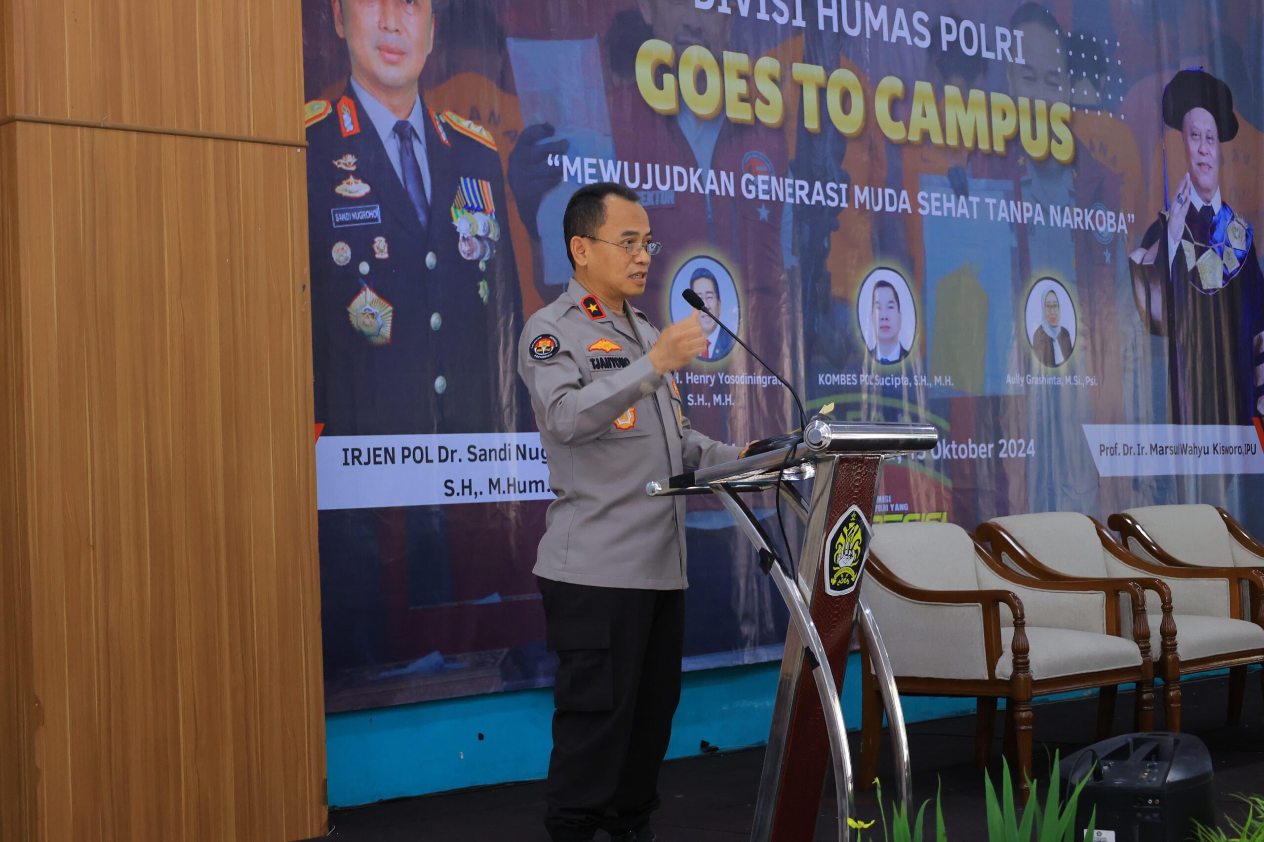 Hal itu dikatakan Tjahyono saat membuka kegiatan Sosialisasi Kinerja Polri kepada 350 mahasiswa Goes To Campus 2024, bertema “Mewujudkan Generasi Muda Sehat Tanpa Narkoba”, di Universitas Pancasila (UP), Jakarta Selatan, Selasa (15/10/2024).