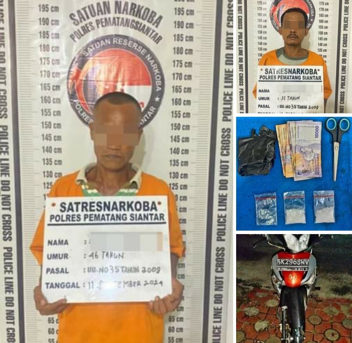 Kapolres Pematangsiantar AKBP Yogen Heroes Baruno SH, SIK melalui Kasat Resnarkoba AKP J.H. Pasaribu SH, MH pada hari Sabtu 14 September 2024 mengataka kedua pria itu berinisial SS (45) warga Jalan Perdagangan Desa Pematang Bandar Kecamatan Pematang Bandar Kabupaten Simalungun dan NS (31) warga Huta 5 Talun Rejo Kecamatan Pematang Bandar Kabupaten Simalungun.