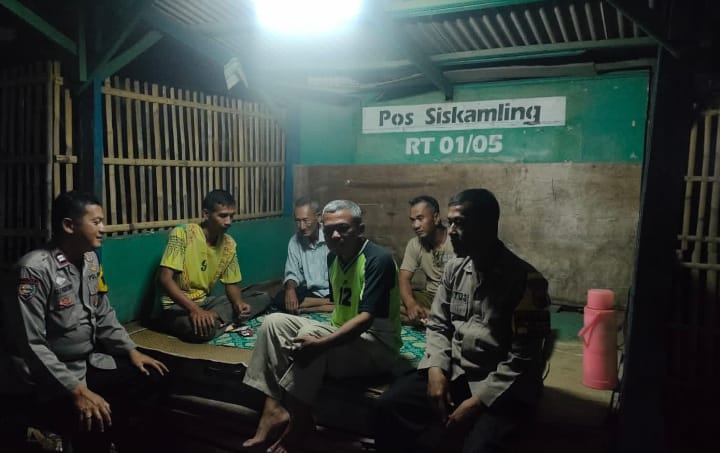 Polres Karawang – JP – Duet Anggota Bhabinkamtibmas Polsek Klari Polres Karawang Aiptu Ali Nurdin Bersama Aiptu Yanto Sugiyarto ngawangkong bersama warga yang sedang asyik ronda di Desa Sumurkondang, Kecamatan Klari, Karawang, Kamis dini hari (31/10/2024)