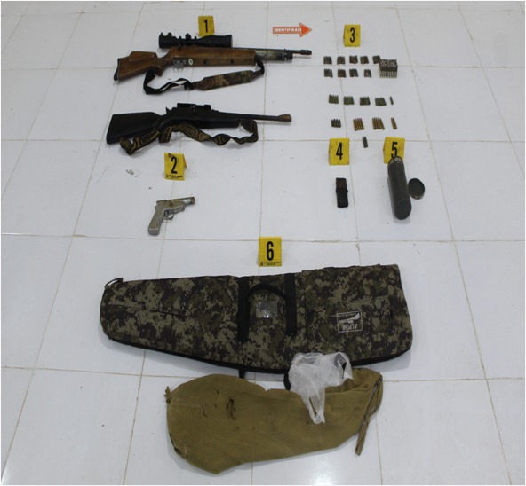 “Di antaranya adalah 3 pucuk senjata api rakitan laras panjang, 1 pucuk senjata api rakitan laras pendek, 1 senapan angin PCP beserta teleskop, dan berbagai jenis amunisi dengan total 136 butir. Selain itu, ditemukan pula 4 bom rakitan yang berhasil diamankan’ jelasnya.
