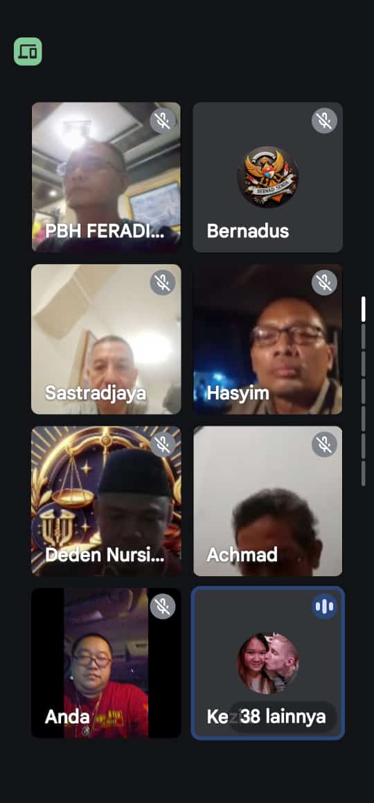 JURNALPOLRI.COM – TASIKMALAYA – FERADI WPI SUBUR JAYA LAWFIRM memberikan pendidikan praktek PERADILAN SEMU melalui Google Meet. Acara yang baru pertama kali diadakan ini diikuti oleh sekitar 100 peserta dengan antusias yang luar biasa, Rabu (18/9/2024).