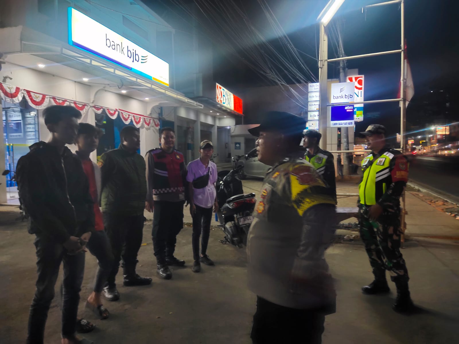 Personil Polsek Rancaekek Bersama Koramil Rancaekek, Satpol PP Kec. Rancaekek gelar patroli gabungan guna menjaga situasi kamtibmas di wilayah hukum Polsek Rancaekek dalam rangka Perayaan Hari kemerdekaan RI Ke -79 Tahun 2024 serta sampaikan himbauan tentang kamtibmas kepada warga masyarakat khususnya warga masyarakat yang ada di rancaekek.