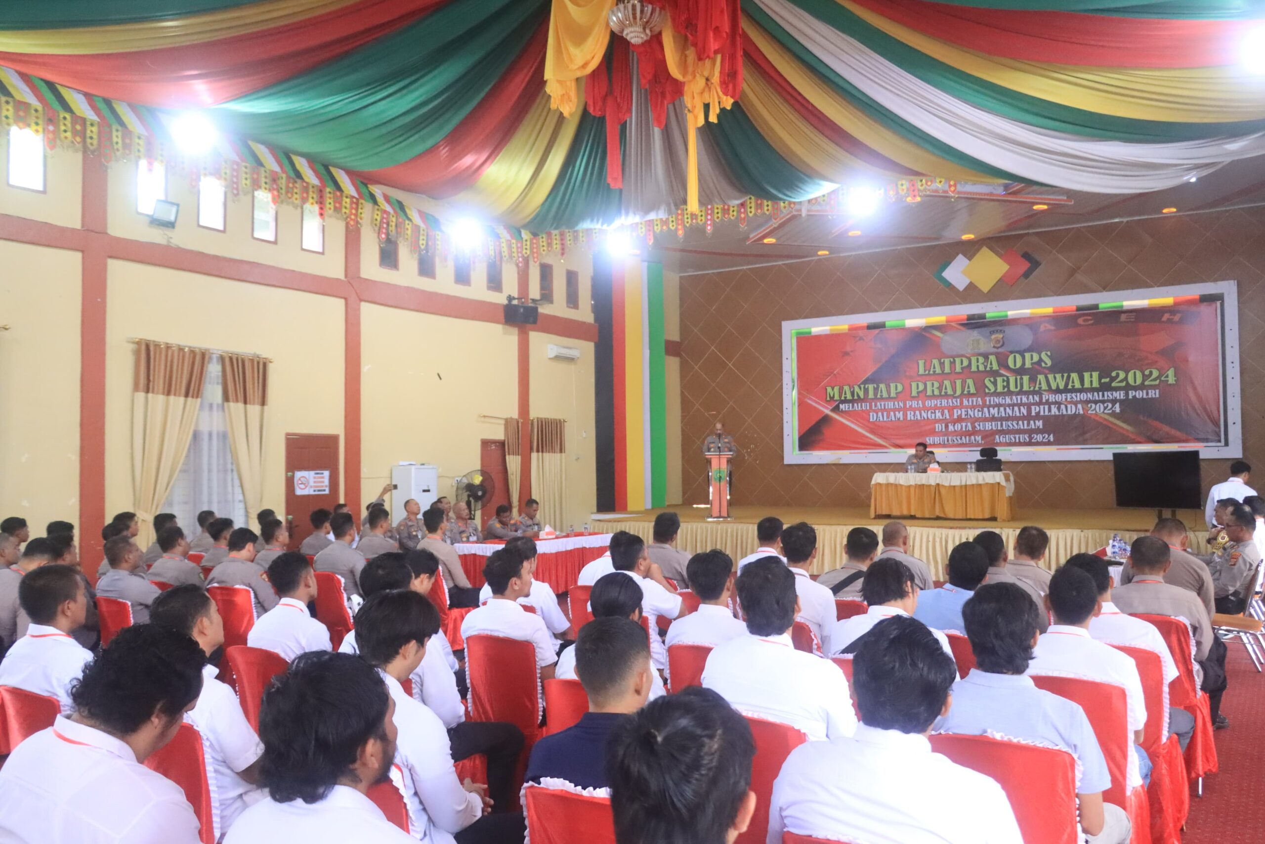JURNAL POLRI.COM-SUBULUSSALAM-ACEH-Kepolisian Resor Subulussalam gelar pembukaan Latpra Ops (Latihan Pra Operasi) Mantap Praja Seulawah 2024 bertempat di aula serbaguna Pendopo Walikota Subulussalam Desa Subulussalam Kecamatan Simpang Kiri Kota Subulussalam, Rabu, 21 Agustus 2024.