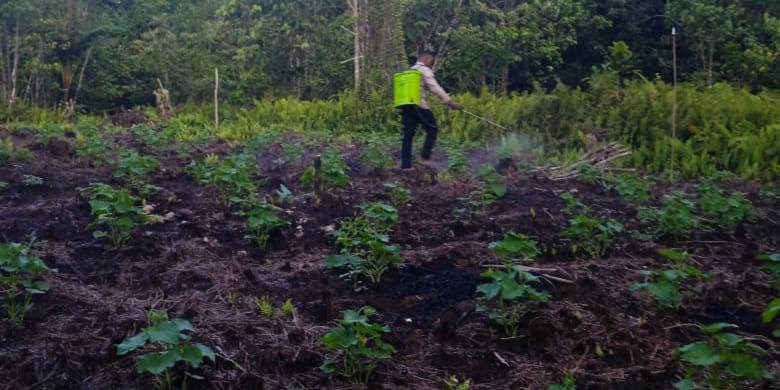 Papua – Bhabinkamtibmas Polsek Biak Barat, Aipda Hendrik Yembise, dan Bripka Jhon Sanadi, serta Briptu Haqikul Fahmi telah melaksanakan penyemprotan dan perawatan tanaman dalam rangka Program Ketahanan Pangan, Sabtu (02/11).