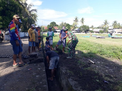 Dalam kegiatan tersebut, personel Koramil 01/Panca Lautang bahu-membahu membersihkan parit serta merapikan sejumlah fasilitas umum, mulai dari lapangan sepak bola, lapangan voli, hingga lapangan takraw.