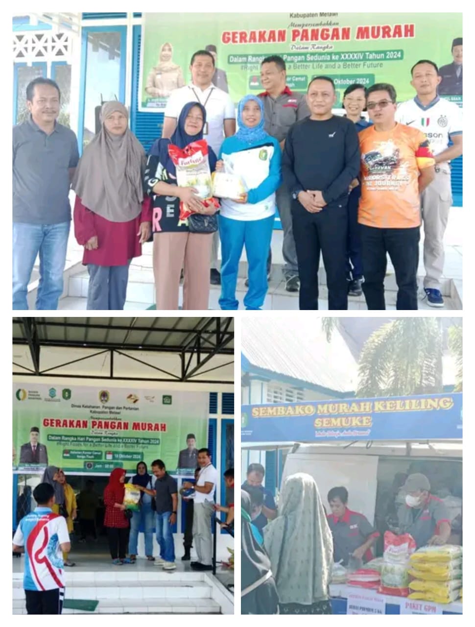 Dalam rangka memperingati Hari Pangan Sedunia ke-44 dengan tema #RightFoodforABetterLifeandABetterFuture, Gerakan Pangan Murah (GPM) resmi dibuka oleh Pjs. Bupati Melawi, Ir. Herti Herawati, MMA. Acara ini dilaksanakan oleh Dinas Ketahanan Pangan dan Pertanian (DKPP) Kabupaten Melawi. Kecamatan Nanga Pinoh, bekerja sama dengan CV. Sembako Kite Berjaya dan Bank Kalbar Cabang Nanga Pinoh. Jumat (18/10/24) di Halaman Kantor Kecamatan Nanga Pinoh.