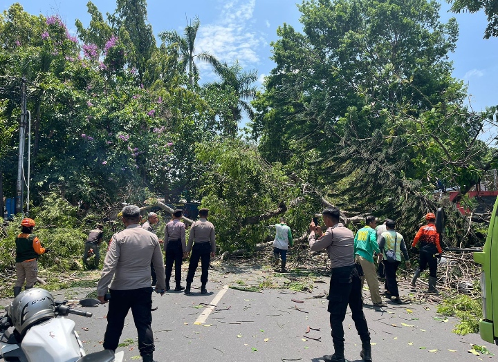 Gercep, Polisi Kota Kediri dan DLHKP Evakuasi Pohon Tumbang