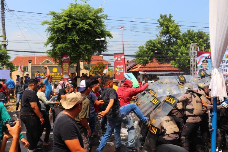 JURNALPOLRI.COM – Polres Pekalongan – Polda Jateng | Ratusan massa yang berusaha menggeruduk kantor KPU Kabupaten Pekalongan berhasil dihalau oleh Polres Pekalongan. Diketahui, ratusan massa tersebut memprotes hasil rekapitulasi pilkada, sehingga mereka menggeruduk KPU untuk menuntut pemilihan ulang.